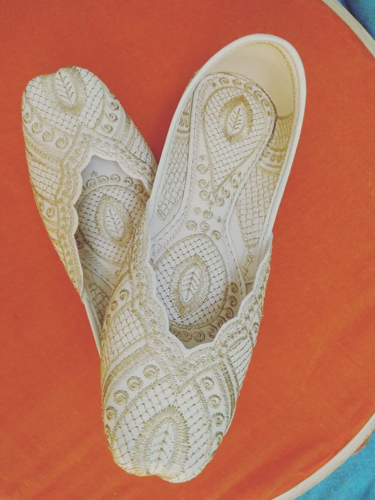 Material: White fabric/leather with fine hand embroidery Use: