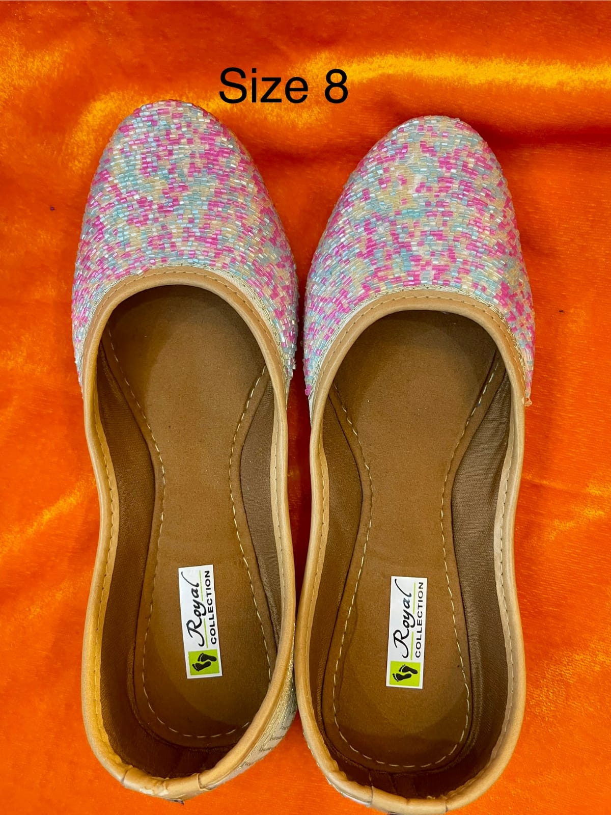– Design: Soft pink and lavender mosaic-style threadwork.[size-6'7'8'9'10'11'12']